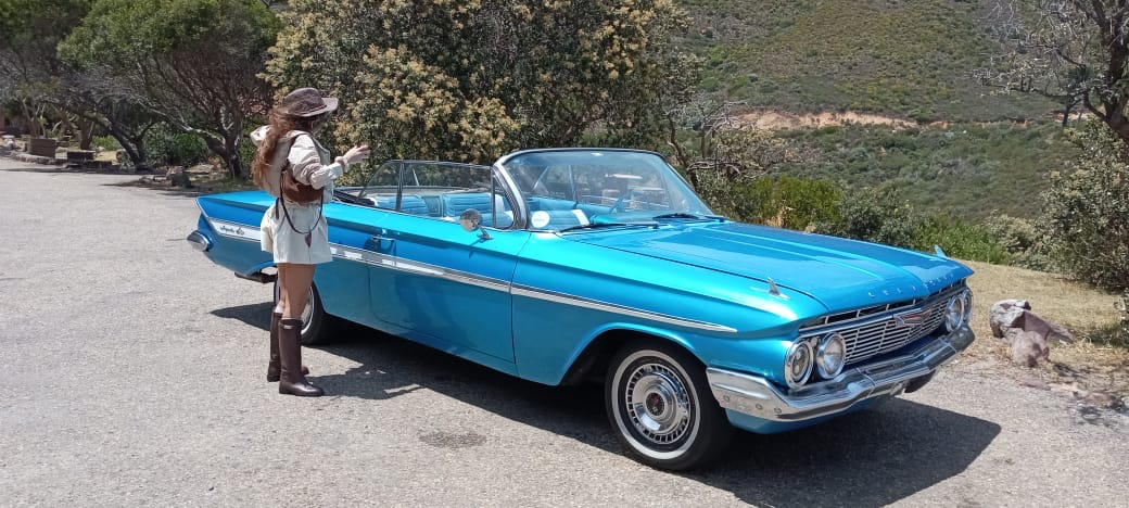 Make a bold, vintage statement with our powder blue and white 1961 Chevrolet Impala Convertible. This powerful V8 beauty blends classic American style with unmatched elegance — perfect for matric balls, weddings, music videos, and scenic drives.